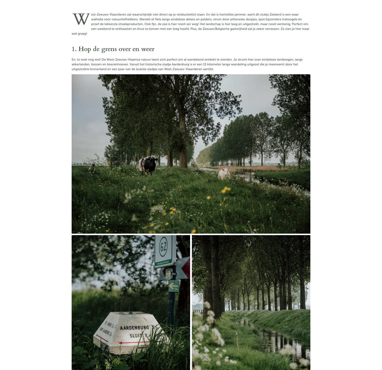 Reportage in tekst en beeld (online) over de West-Zeeuws-Vlaanderen voor Outdoor Dichtbij, in samenwerking met West-Zeeuws-Vlaanderen. Het hele reisverhaal lees je hier.